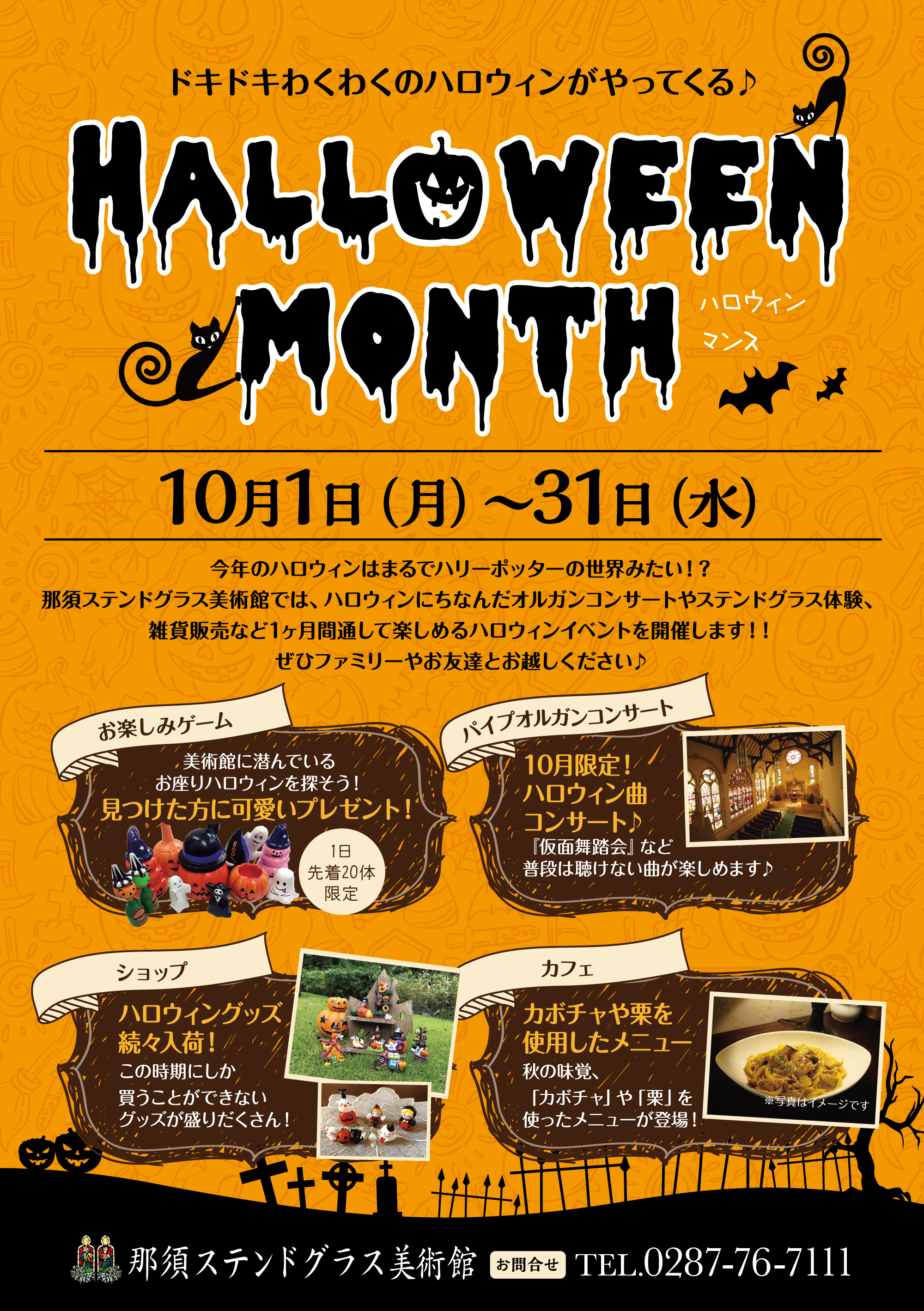 ハロウィンマンスではこの時期にしか聴けないオルガンコンサートや、