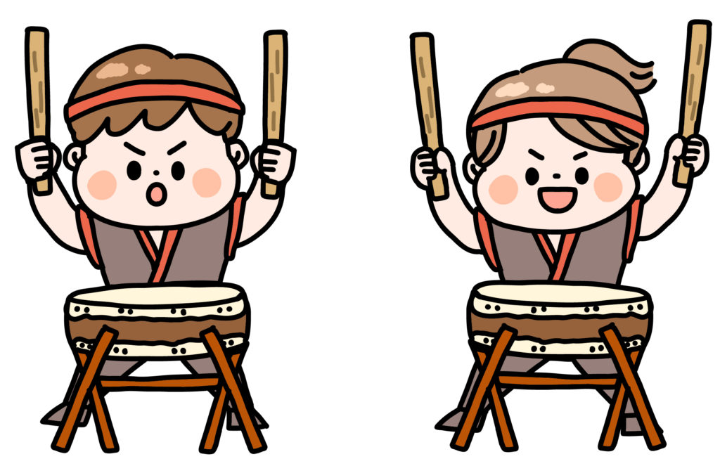大小の太鼓が織り成す調和と勇壮な響きが特徴です。