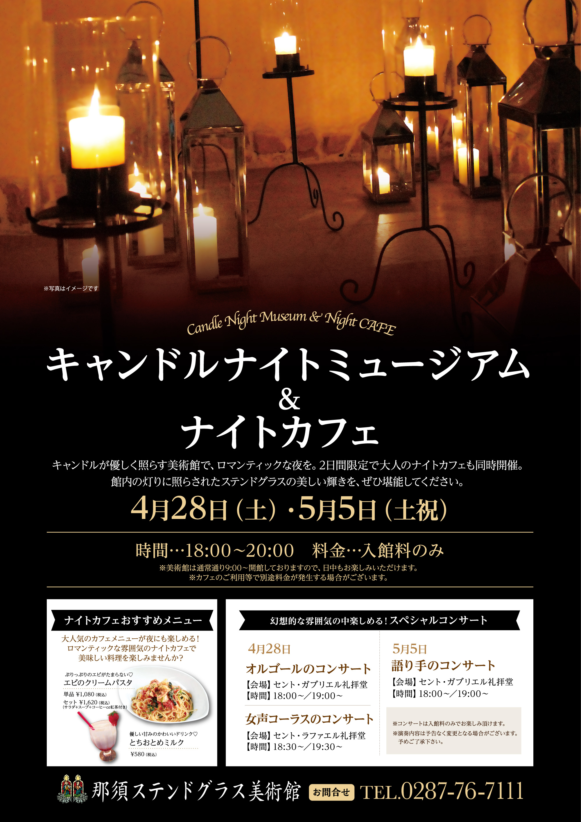 普段のステンドグラス美術館からガラリと変わったロマンティックな風景を、どうぞお楽しみください。