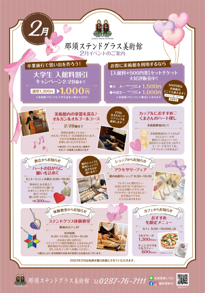 光輝くステンドグラス、館内を包み込むパイプオルガンの音色、静かな時を刻む美術館をお楽しみください。