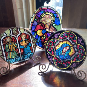 美術館内に展示されているステンドグラスをもとにクイズを解いて答えを見つけてね!