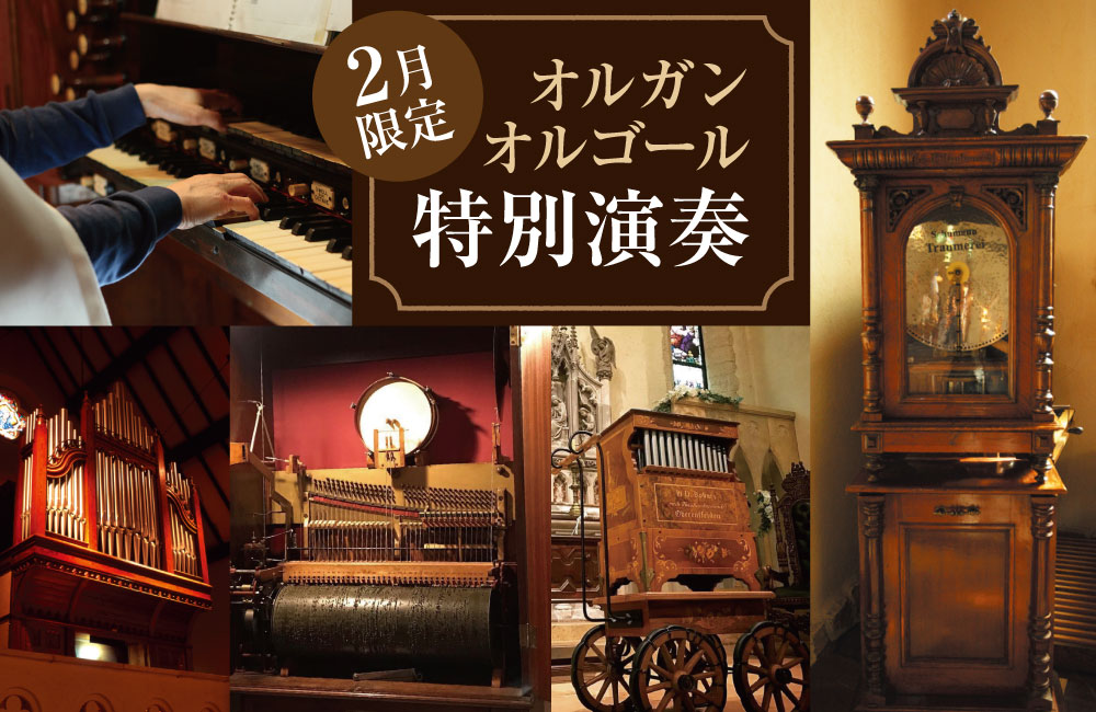 セント・ガブリエル礼拝堂で行われる、アンティークオルゴールの演奏。約110年前のドイツポリフォン社製のアンティークオルゴール。礼拝堂に響く、美しい旋律をお楽しみください。
