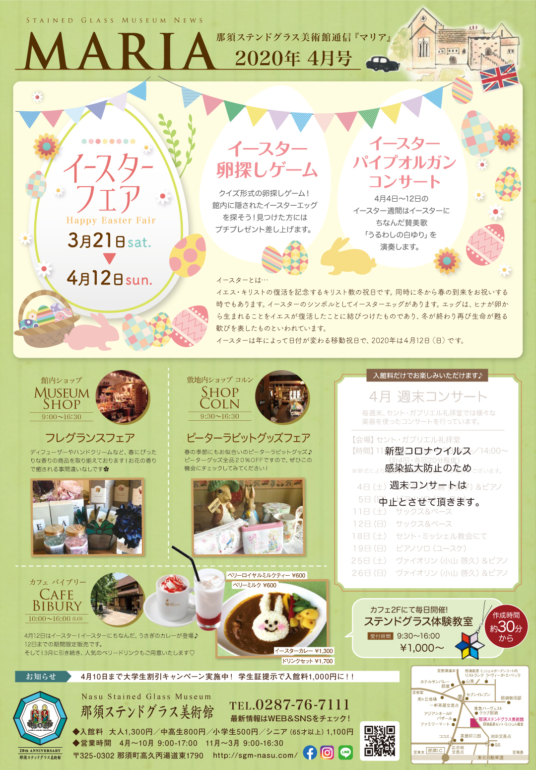 4月の週末コンサートは中止が決定いたしました。