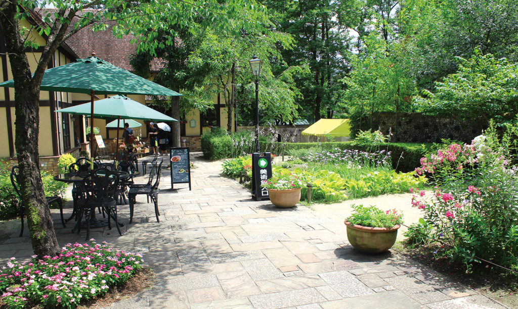 美術館敷地内ガーデンにて、さまざまな癒し体験ができるワークショップ、占いなど