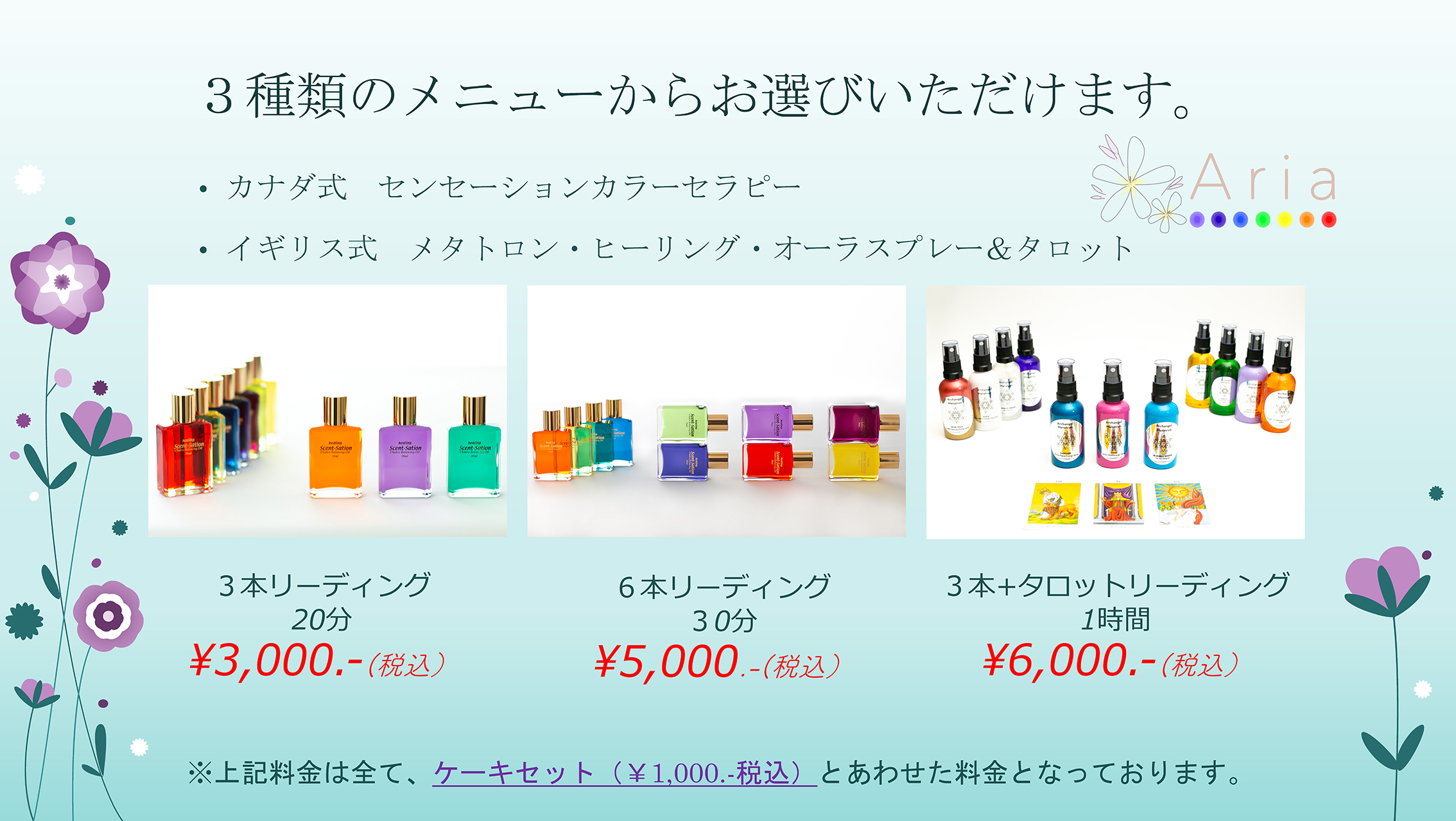 ◇3本+タロットリーディング(1時間)+ケーキセット